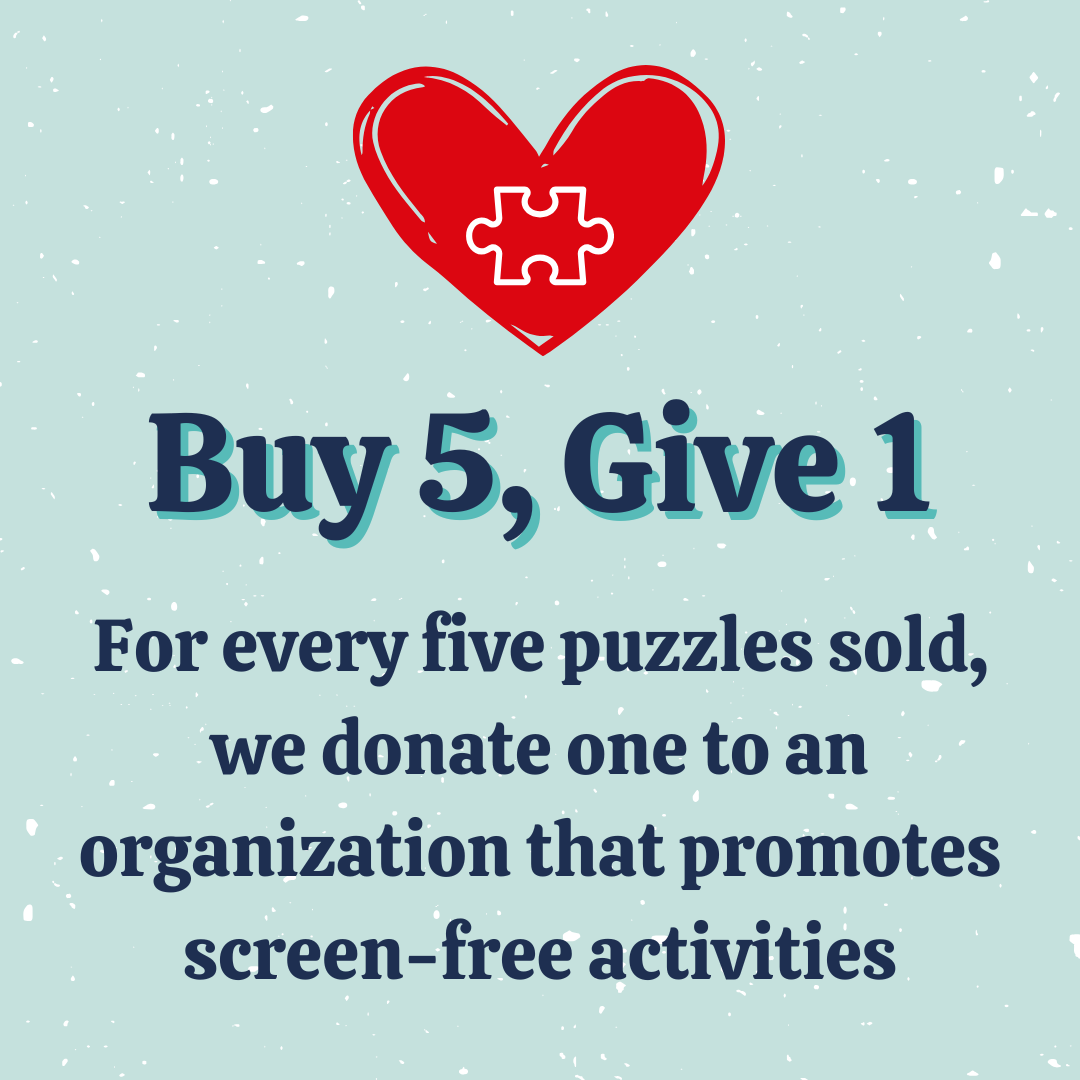 • For every 5 puzzles sold, we donate 1 to a screen-free community cause